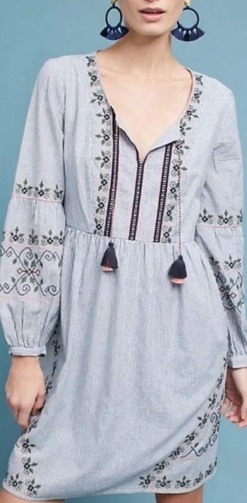 Anthropologie Akemi + Kin Maddie Boho Embroidered Dress Striped size 0 *FLAWED* *item is unrave... Show more