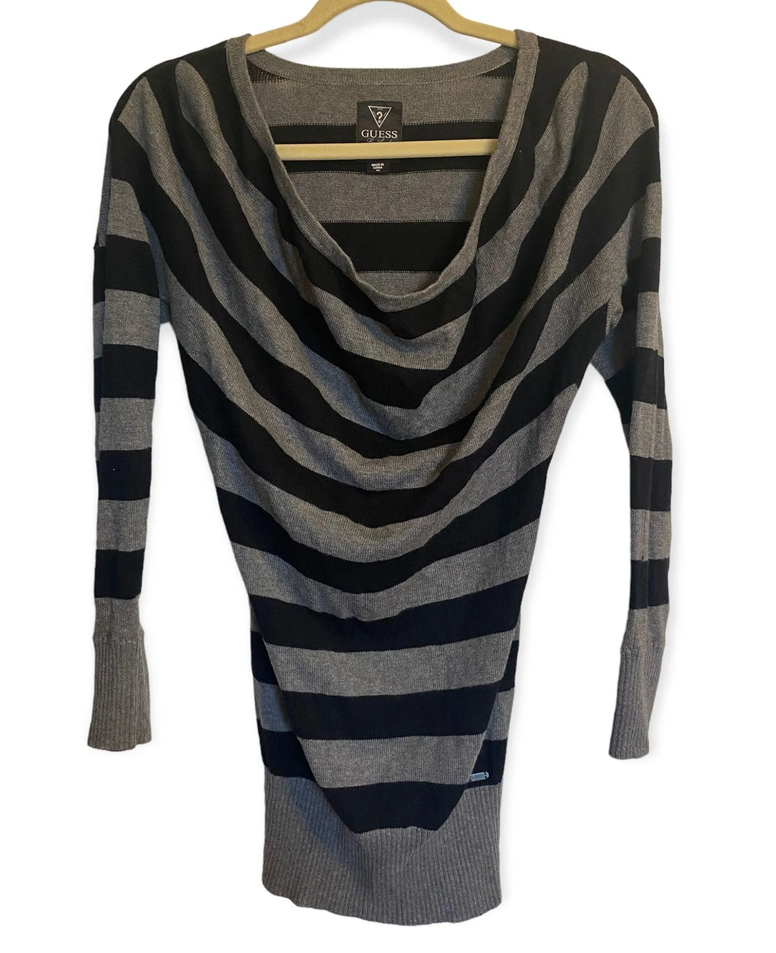 Guess Black and Gray Striped Cowl Neck Long Sleeve Shirt EUC Size XSmall