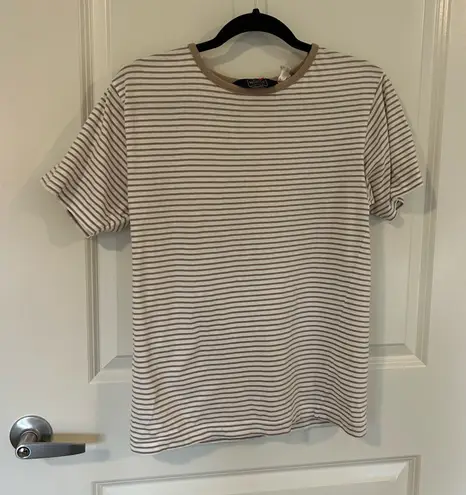 Woolrich woman’s sand tan striped vintage tee in medium 100% cotton Small barely there stain - $19 - From Anastasiya