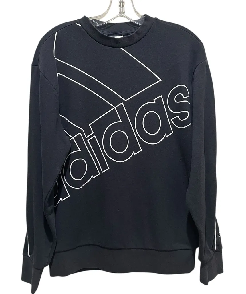 Adidas Originals crewneck sweatshirt in black with a bold oversized white outlined Adidas logo acros... Show more