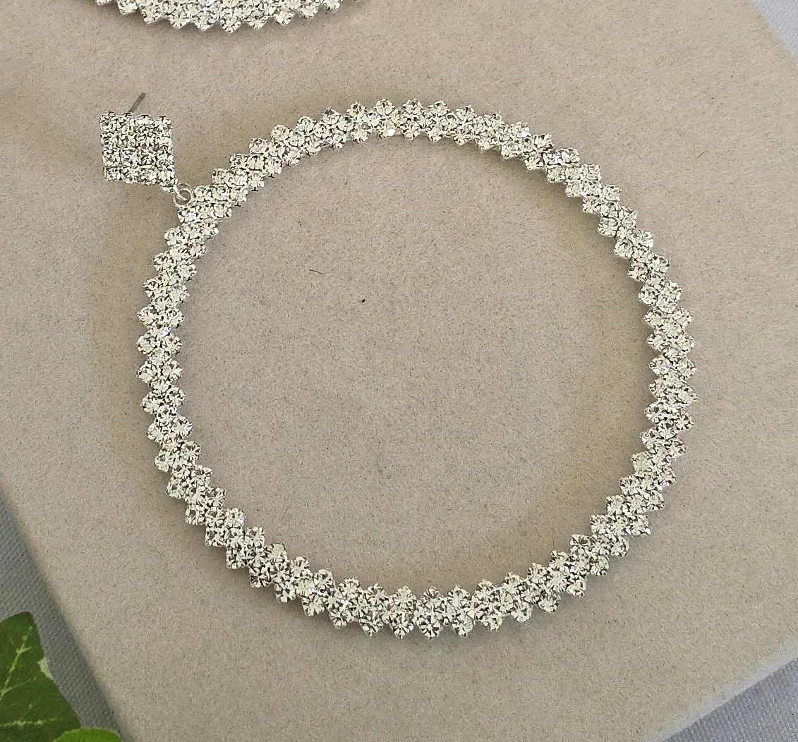 Beautiful statement earrings Silver tone with clear rhinestone Large hoop earrings Post style @101... Show more