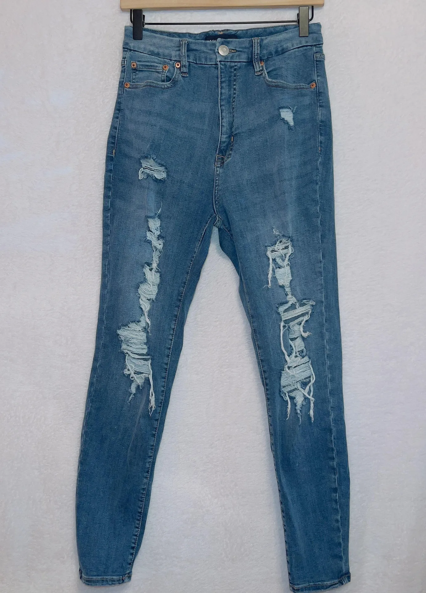 Aeropostale Medium Wash Denim Curvy Super High Rise Distressed Jegging Jeans 8R Condition: good pr... Show more