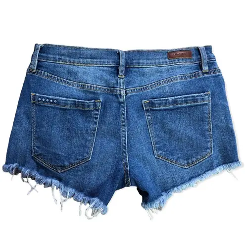 Cutoff hems and distressed detailing make these stretch-denim shorts easygoing weekend faves. Featu... Show more