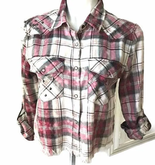 Love Fire Snap Button Shirt. Cropped, Tie-Dyed with a Frayed hem and studded accents. A differen... Show more