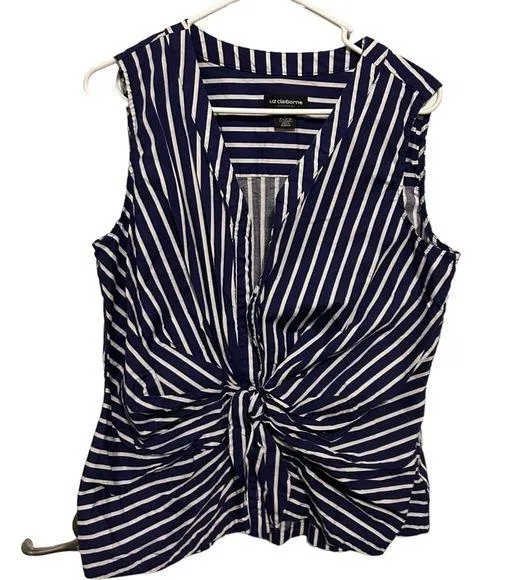 Liz Claiborne Career Sleeveless Striped Tie Front Top Blouse size xl good condition