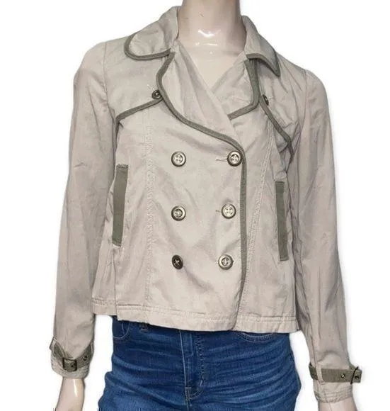 Free People Women’s Size 4 Light Gray Taupe Beige Double Breasted Cotton Blend Mini Trench Jacket. S... Show more