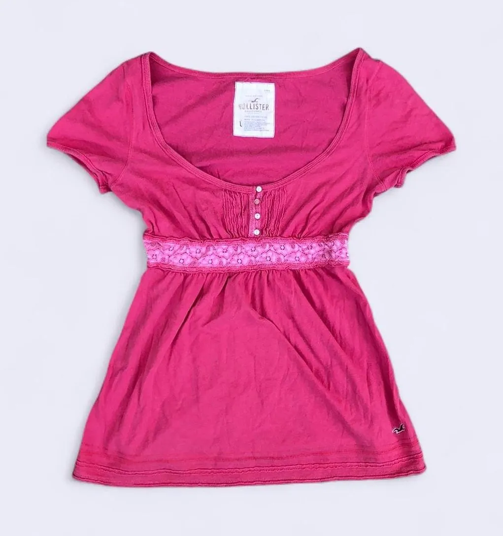 RARE Vintage Y2K Hollister Fairy Pink Lace Waist Button Babydoll Top Blouse Shirt Preppy Short Sleeve 2000s Bella Swan Twilight Size XS - $361 - From Victoria