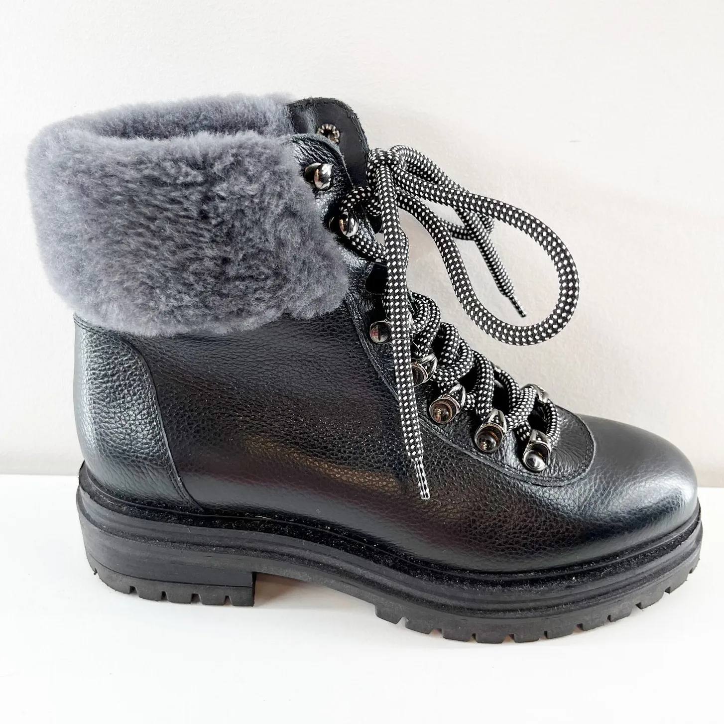 M Gemi Alpi Lace Up Ankle Combat Boots Shearling Faux Fur Trim Black 7.5 - $125 - From DANIELLE