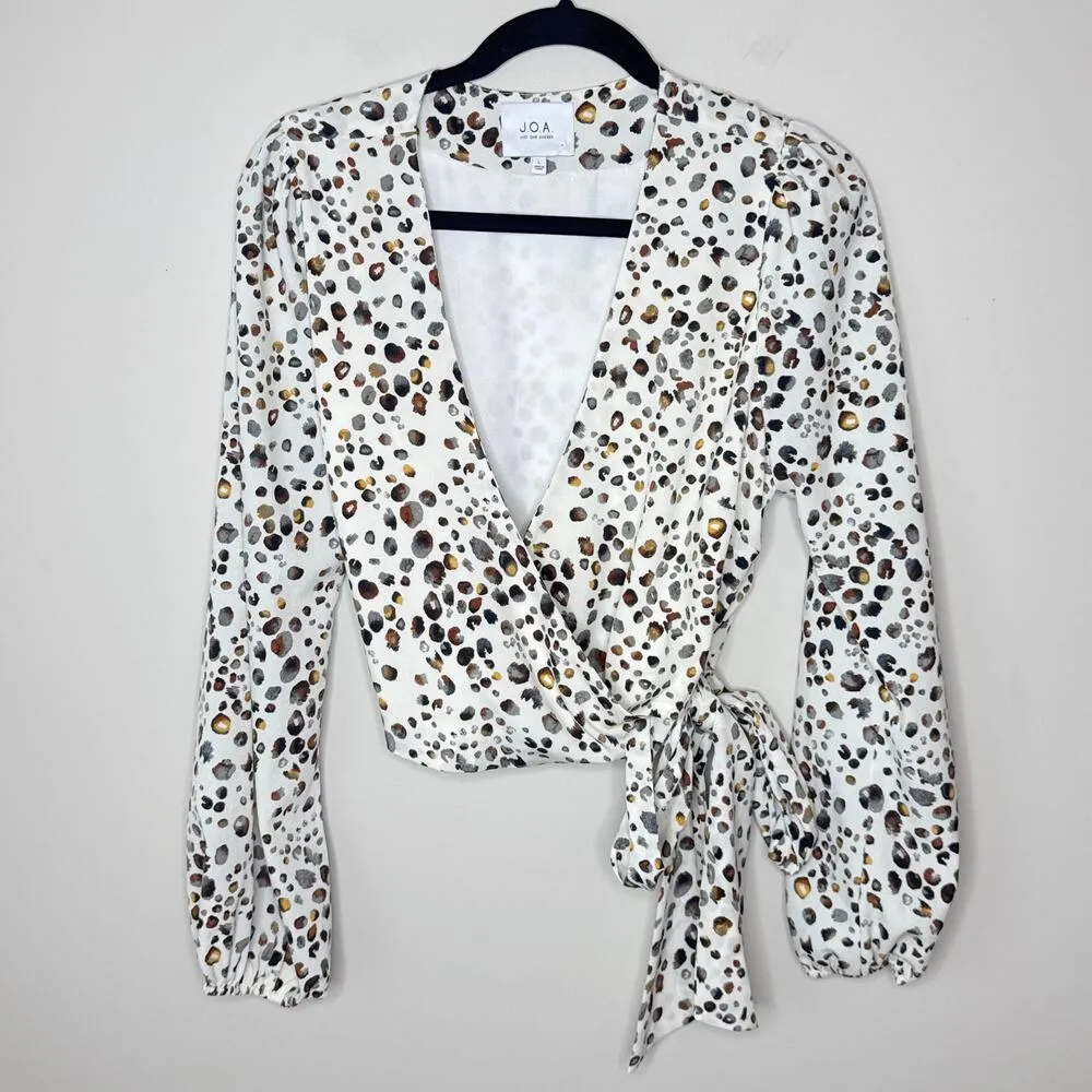 J.O.A. Cropped Leopard Print Wrap Crop Top Size Large * Crossover V-neck, bracelet puffed slee... Show more