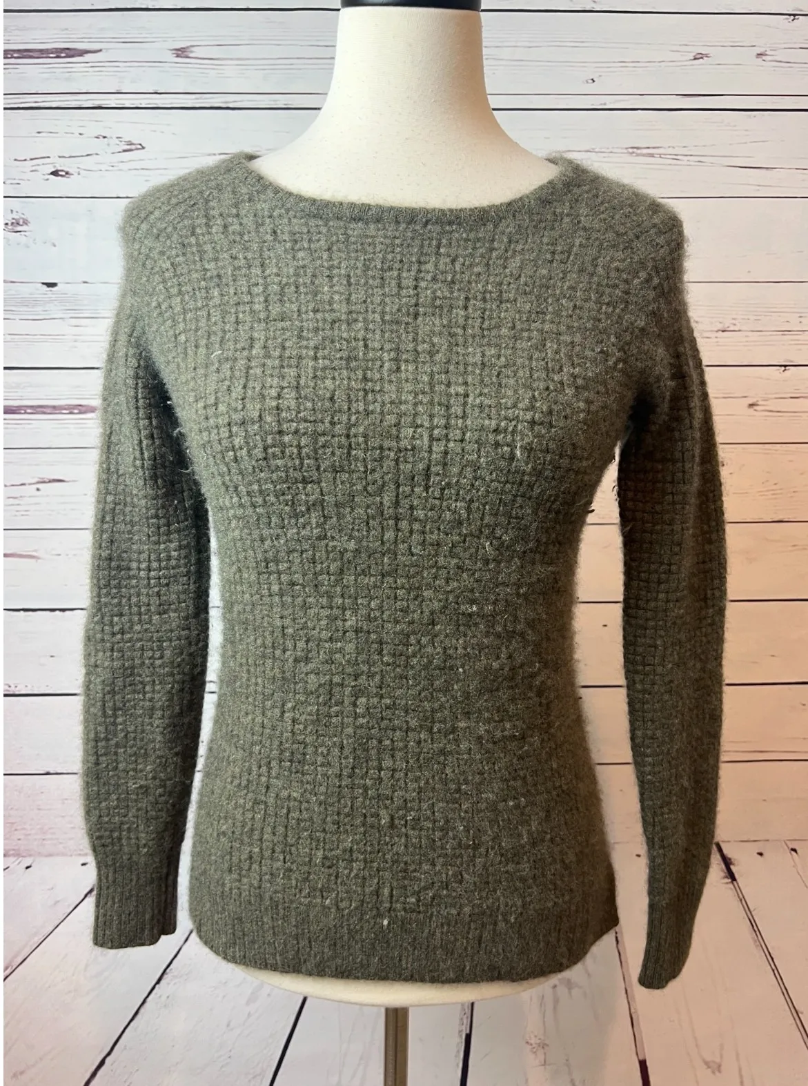 Athleta Lodge Women Cashmere Blend Textured Knit Pullover Sweater size XS Extra Small Olive green Cr... Show more