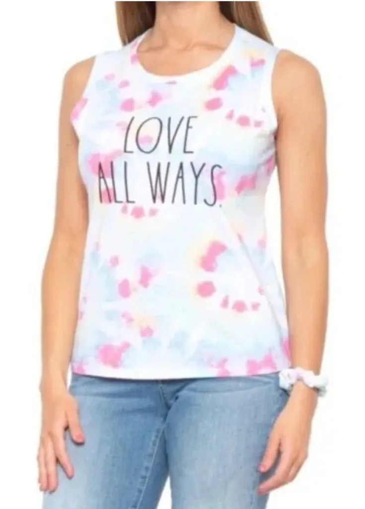 Rae Dunn Pastel Tie-Dye Love All Ways Top Tank XS Red - $15 - From Whitney