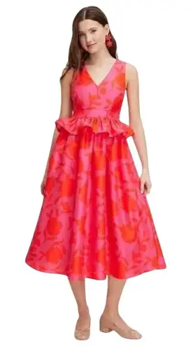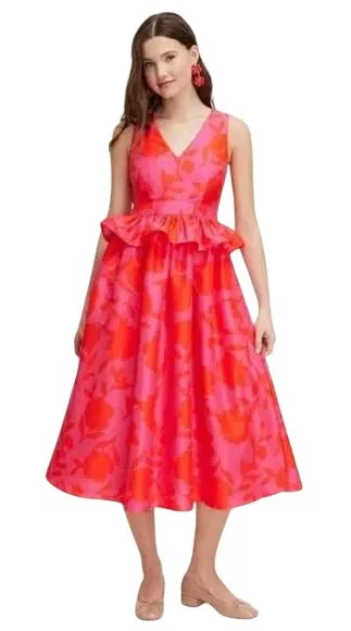 Kate Spade Target Red Pink Classic Floral Sleeveless Peplum Midi Dress Size 6 NWT Sleeveless Peplum... Show more