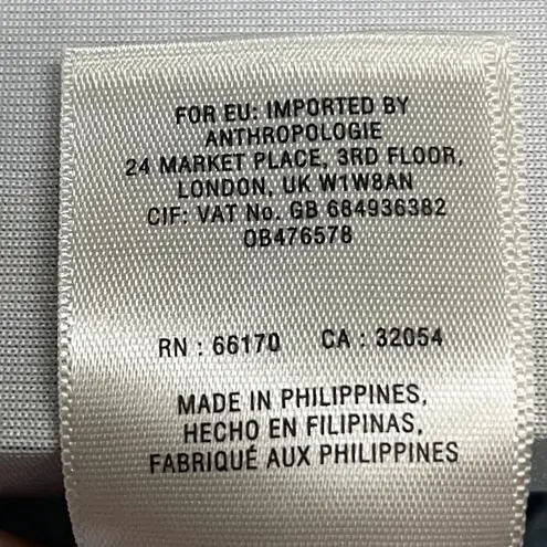 The color of this blouse is much lighter in person. This HD in Paris blouse features a beautiful lace pattern with a crew neck and short sleeves. It has a peplum style and a button closure. The blouse comes in a size 2 and is light blue in color with cream lace accents. The material is a blend of 59% cotton and 41% polyester, and the fabric type is lace. This tunic style blouse is perfect for any occasion and was crafted in the Philippines.