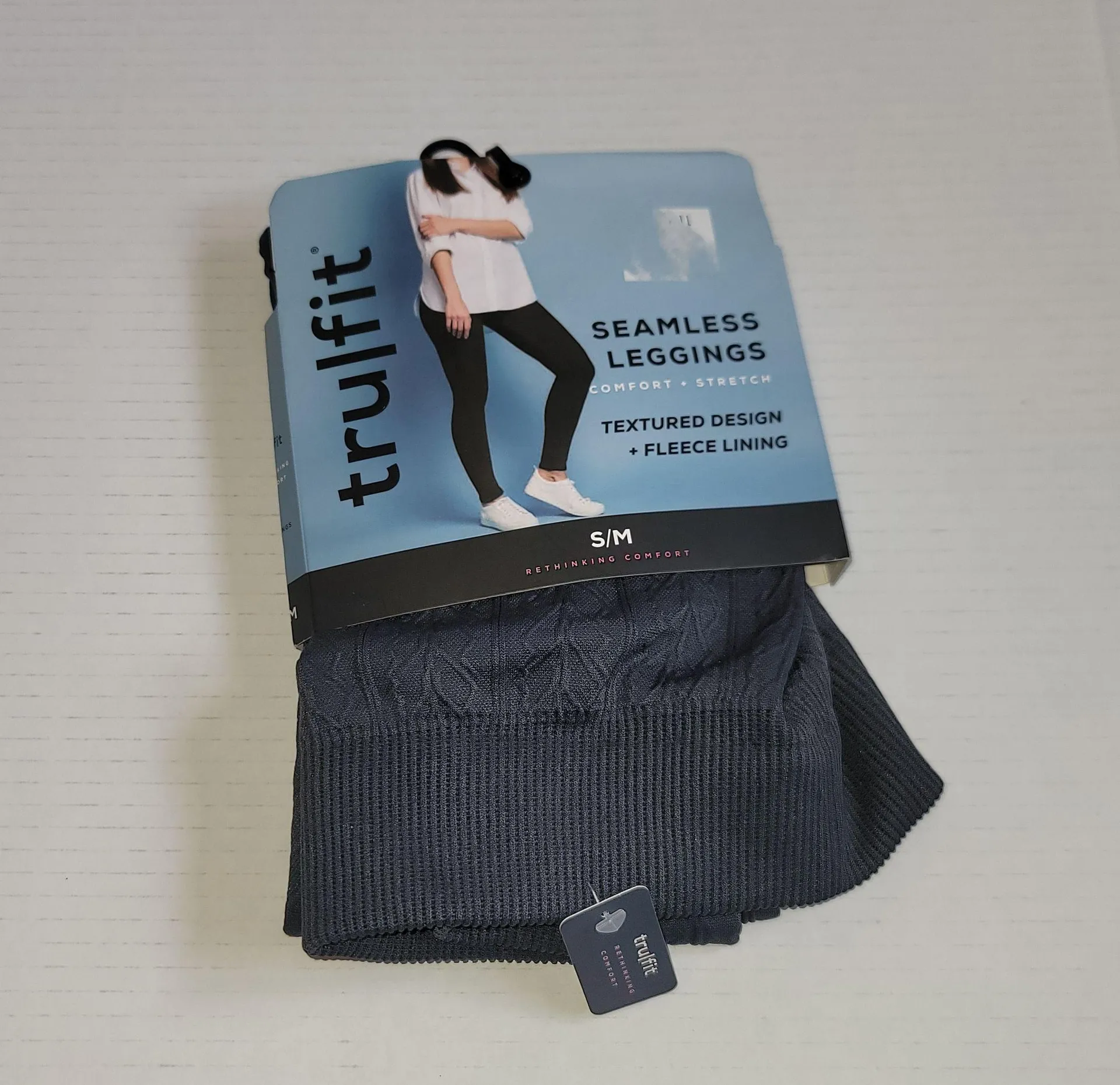 The Tru Fit Seamless Leggings in Black are perfect for activewear, with a comfortable stretch and textured fleece lining. Made from cotton fabric in a dark wash, these leggings are designed for women in size S/M. The seamless style provides a comfortable fit, while the black color adds a sleek and versatile look to any outfit. The TruFit brand ensures quality and durability, making these leggings a great addition to any wardrobe for those looking for comfort and style in their activewear choices.