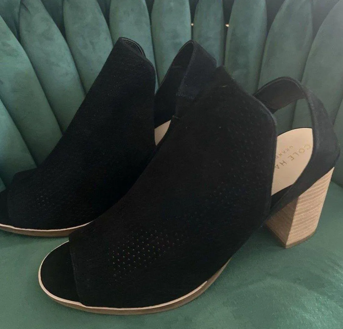 The Cole Haan Women's Callista Open Toe Slingback Suede Booties in black size 6B are stylish and ver... Show more