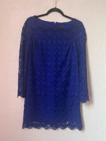 Good condition. Size 4. Blue lace with slight bell sleeve. Back zipper. Smoke free home. Measuremen... Show more