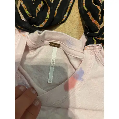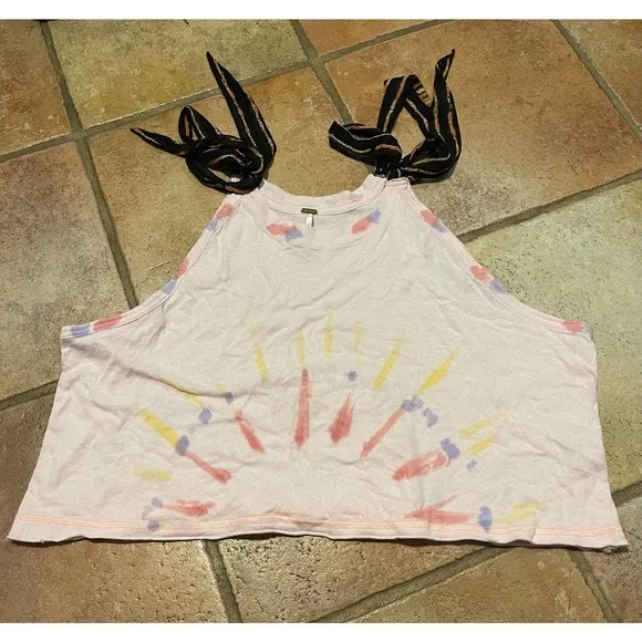 Tie shoulders crop tank top in pink by Free People. Cotton knit body with a polyester chiffon print... Show more