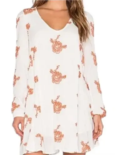 Free People Emma Austin Boho Floral Gauzy Embroidered Swing Dress Size Large