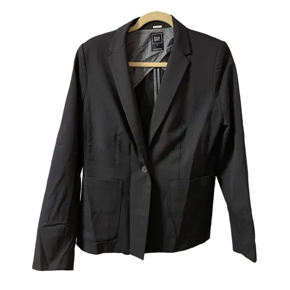Pre owned like new. Navy blue wool blend blazer. Womens size 12.