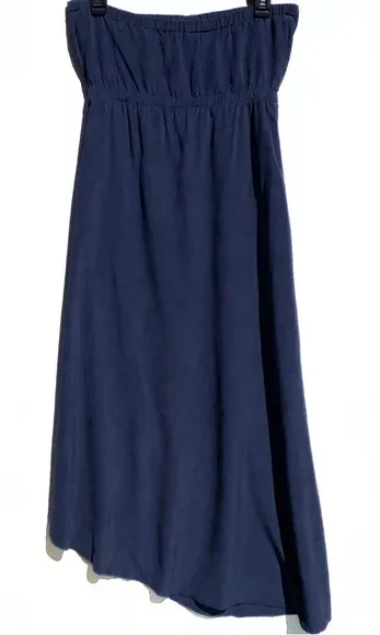 JOIE Women’s Navy Blue Strapless tube top wrap skirt 100% silk dress medium - $68 - From Christian