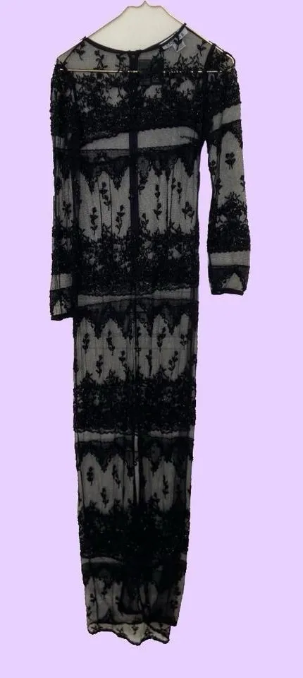 š„ Brand: Sherrie Bloom and Peter Noviello Chetta B š„ Chetta Dress š„ Size: 6 š„ Rayon / Nylon š„ solid spaghetti strap lining, sheer lace long sleeve outer dress #goth #whimsygoth #grunge #morticia #lace