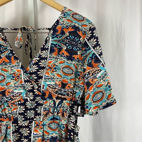 Shein size medium/6 abstract floral print dress Flowy flutter sleeves Side cutouts V neck Tie back L... Show more