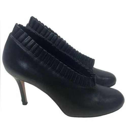 Kate Spade Black Leather Ruffled Booties Heels Size 10 Heel approximately 3-3.5” EUC