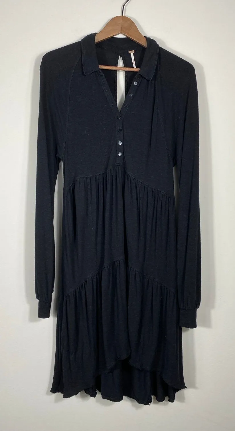 Effortlessly boho-chic, this Free People black long sleeve mini dress features a soft rayon-linen bl... Show more