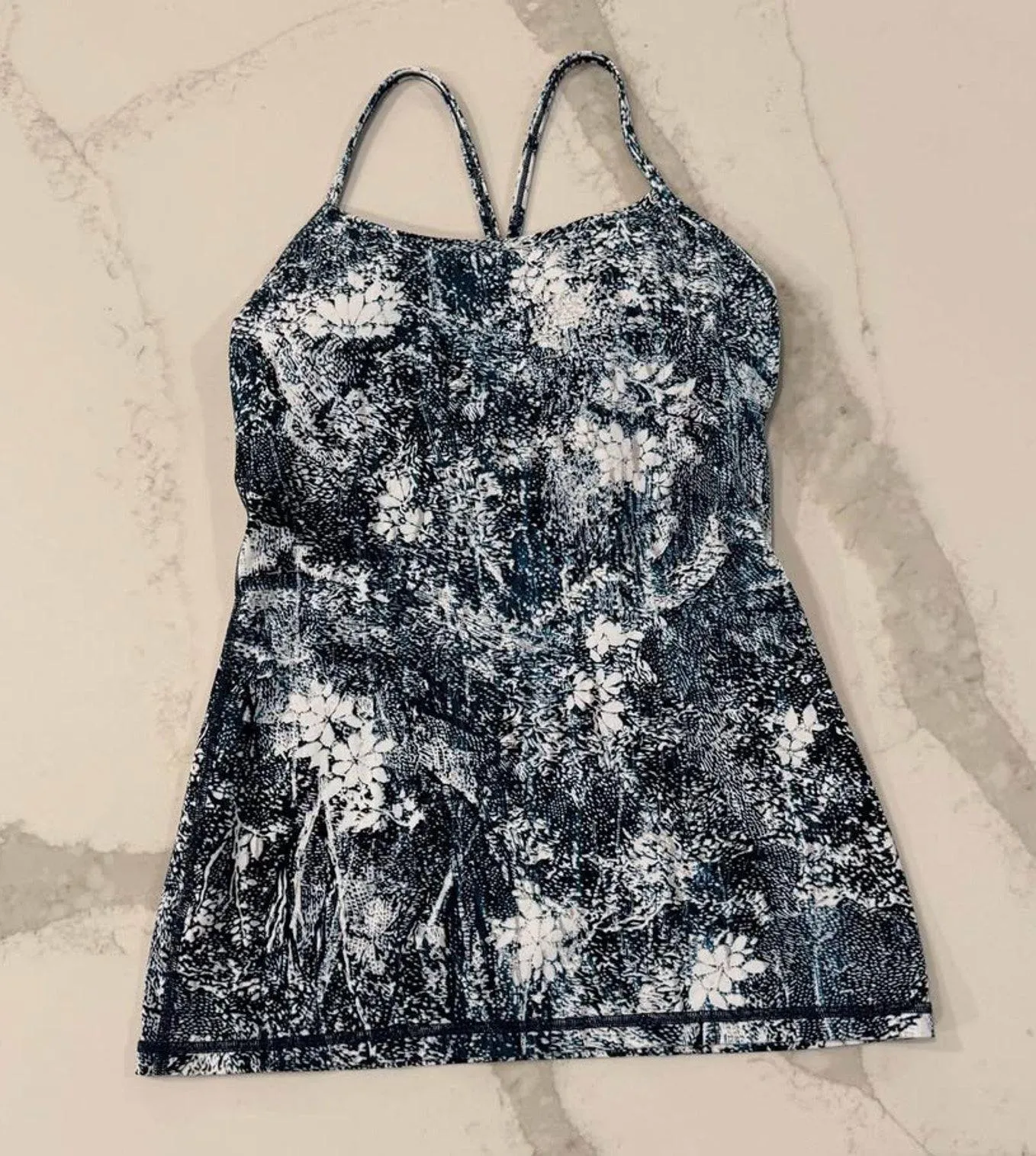 Lululemon Power Y Padded Tank Top Women’s Size 6 Luon Wildwood Floral Blue Multi Shelf Bra - Work... Show more