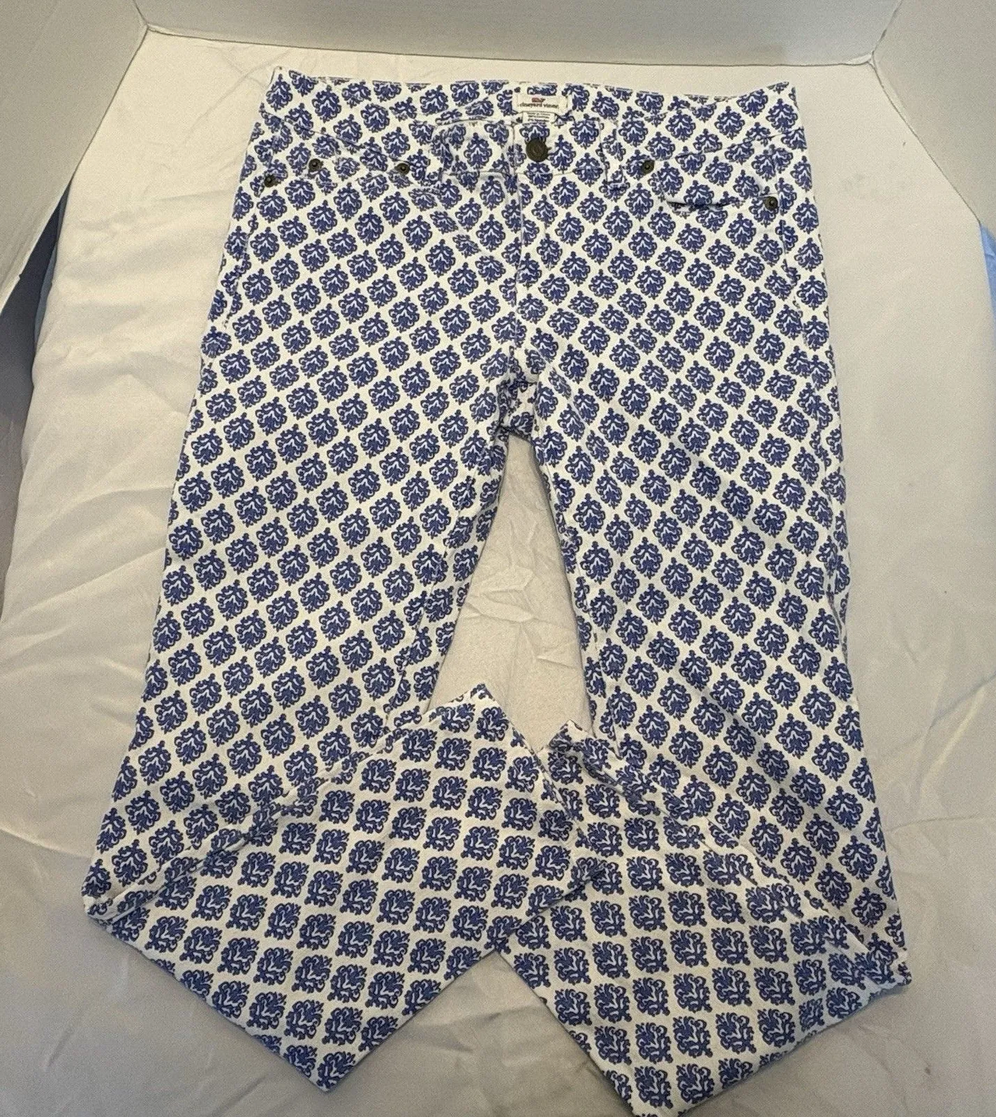 The Vineyard Vines Gustavia White Blue Printed Mid Rise Skinny Ankle Jeans in size 4 are a stylish a... Show more