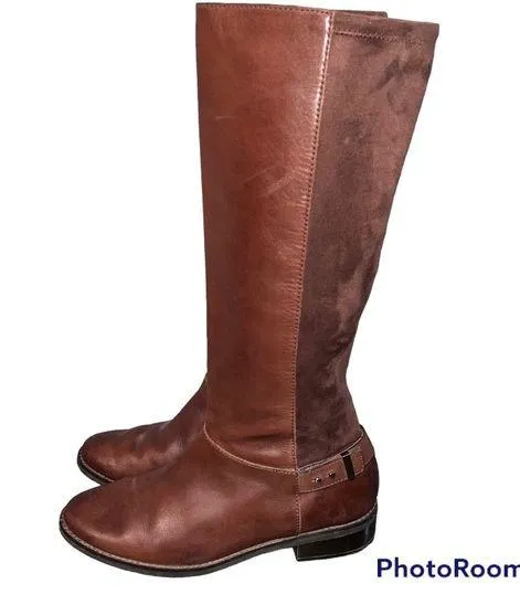 Women’s Cole Haan Brown Leather Adler Tall Riding Boots size 9.5 Stretchy suede back panel Butter so... Show more
