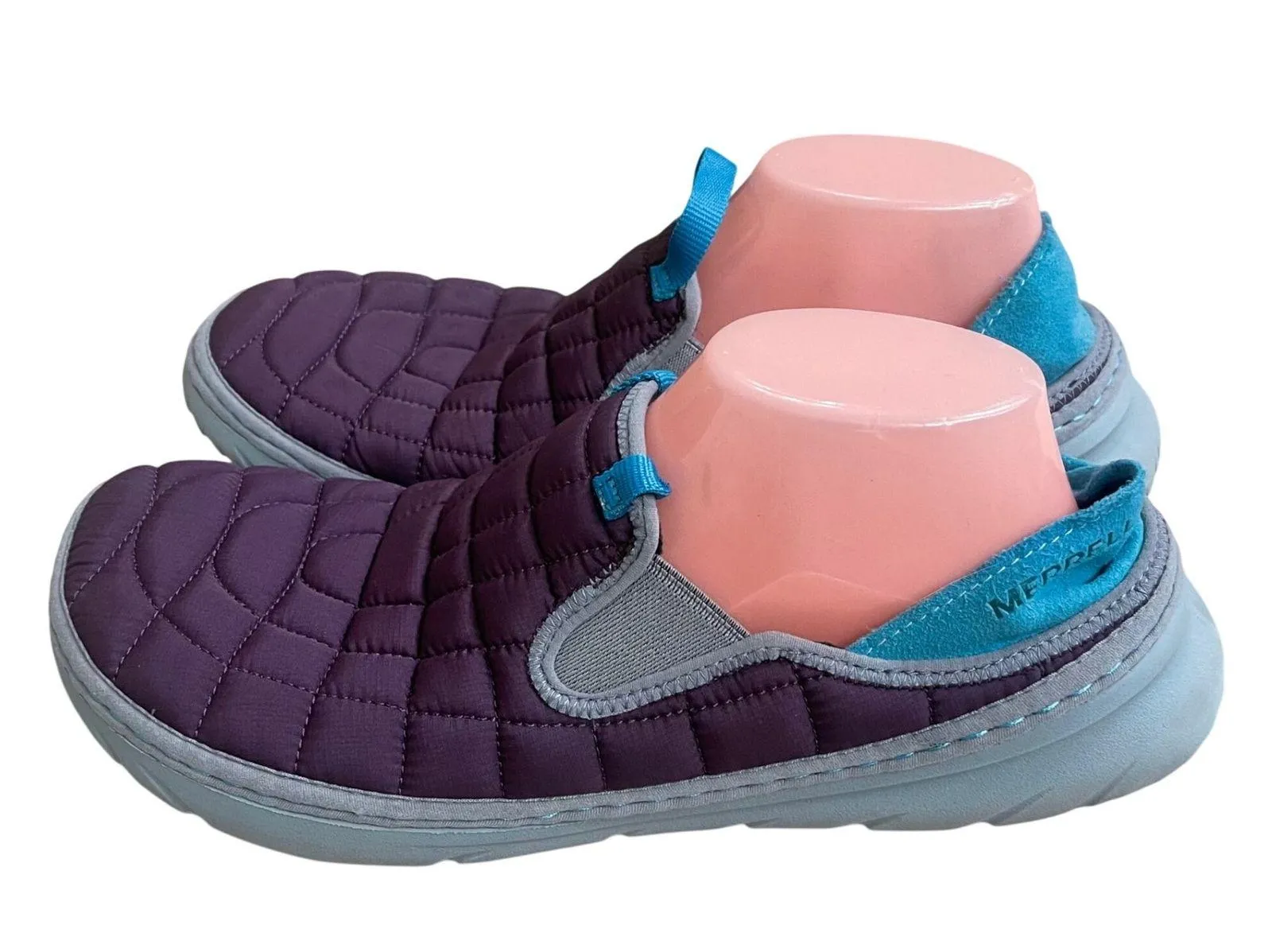 Pair of Merrell slip-on shoes designed to Merrell Women's Sz 11 hut moc moccasin Purple Quilted Comfort Slip On Shoes They have normal wear and dirt on bottom soles as well as in the insoles These shoes are ideal for casual outings, running errands, or simply relaxing at home. Style: Loafer Color: Purple Department: Women Type: Casual Upper Material: Polyester Toe Shape: Round Toe Country/Region of Manufacture: Bangladesh Model: Merrell Comfortcore Heel Height: Flat (Under 1 in) EU Shoe Size: 42 Bin 13 Keywords: Merrell, Slip on shoes, Loafers, Comfort shoes, Womens shoes, Purple shoes, Quilted shoes, Casual shoes, Everyday shoes, Mules Please see all approximate measurements. Please ask any questions before purchasing