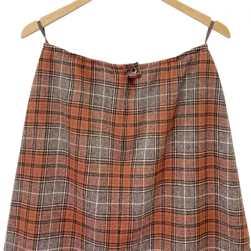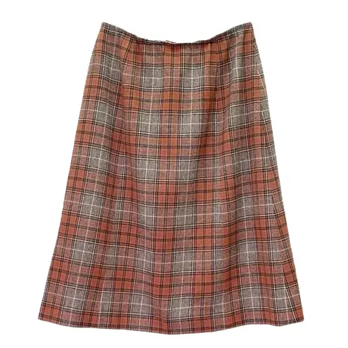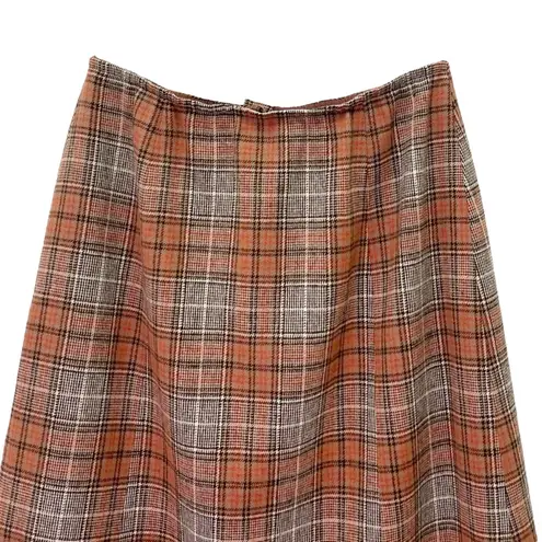 Vintage Pendleton 100% virgin wool plaid A-line skirt in orange and brown tones. Made in USA, fully... Show more