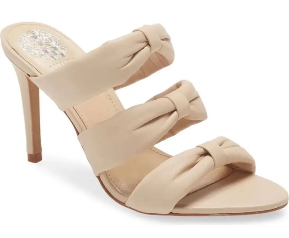 Vince Camuto Womens Size 5.5 Sheepskin Thendie Bow Mule Sandals Taupe Beige Pre-owned with some du... Show more