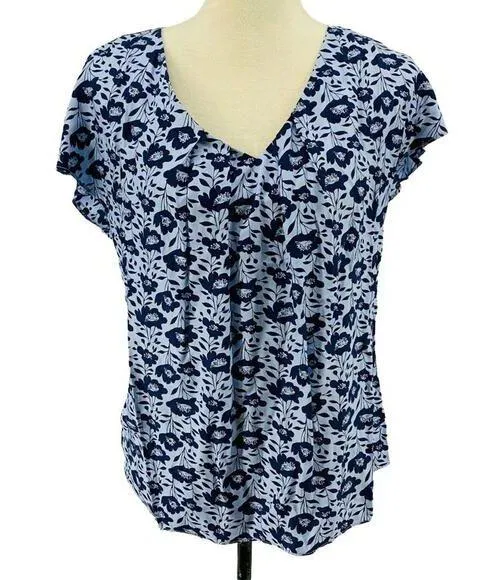 Boden Ravello Silk Blend Flower Navy Blouse. -Beautiful Navy Flowers over Pale Blue Background. -Fabric Covered Button and Loop Back. -Cap Sleeves. -Pleated Neck. -Style W0033 -Silk Blend Size 8 US -NWOT