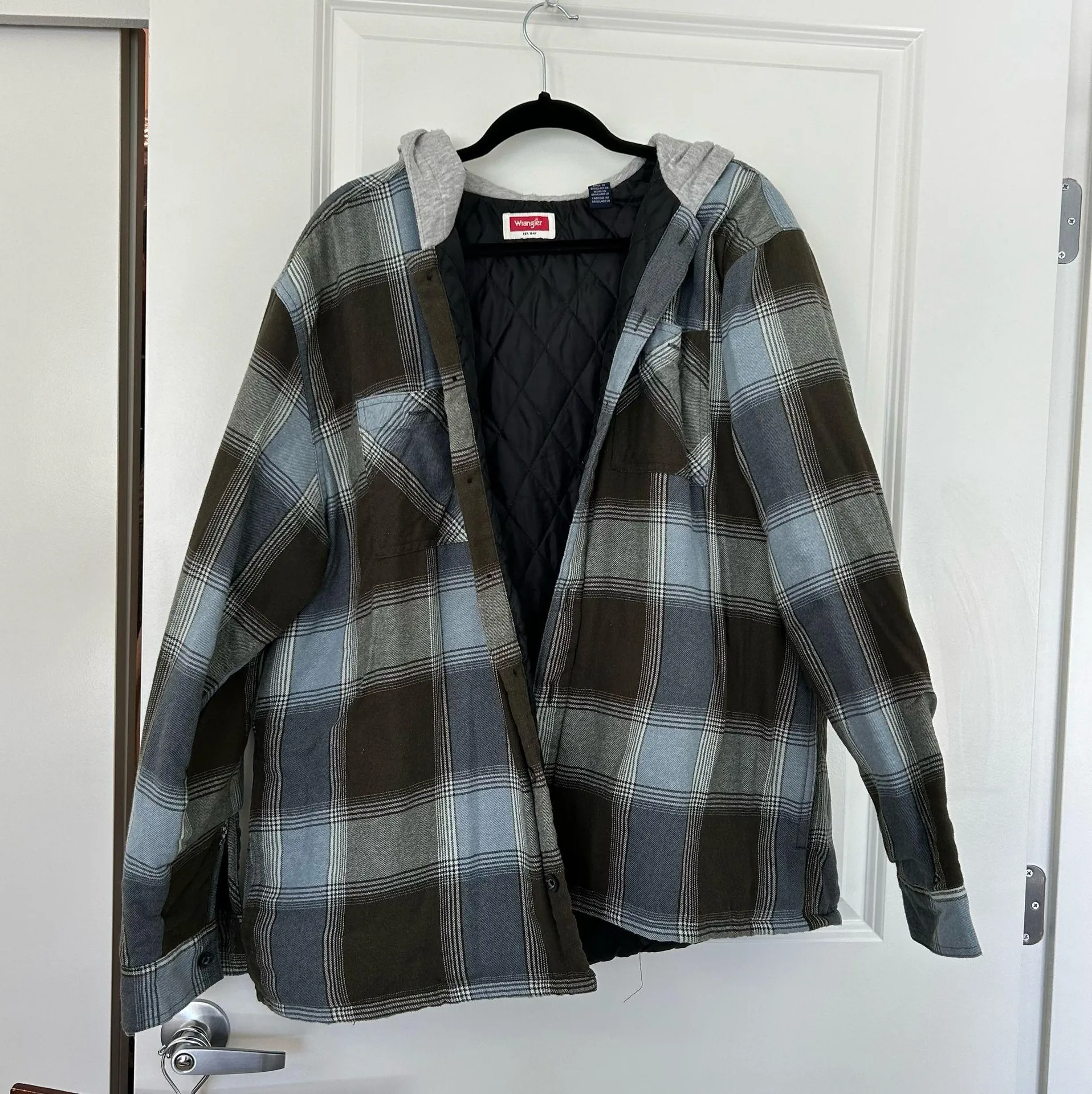 Wrangler black and grey plaid hooded flannel jacket Size XL - $50 (16% Off Retail) - From Anastasiya