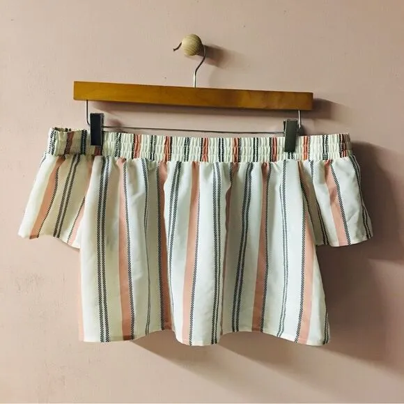 Forever 21 Cream Striped Off-the-Shoulder Crop Top Cute cream crop top with vertical stripes and fl... Show more
