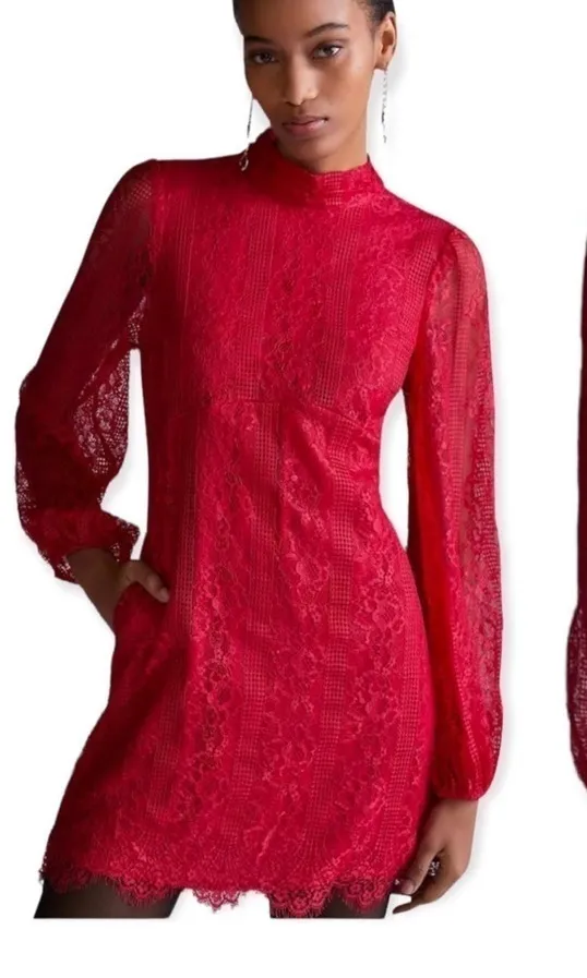 ANTHROPOLOGIE Maeve Open Back Lace Mini Dress Raspberry Size 12P NEW •Long Sleeve Mini Dress •Open... Show more