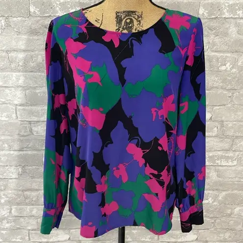 Talbots’s abstract multicolor blouse Keyhole back closure Button cuffs