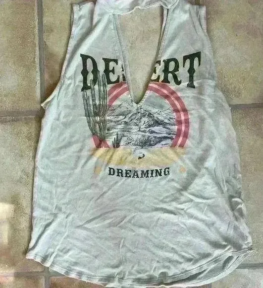 Express One Eleven Desert Dreaming cream colored tank with v-neck and high neck; size S