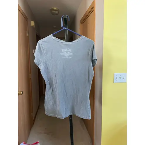 Embrace your adventurous spirit with the Women's Harley-Davidson Gray Blue Freedom Machines Short Sl... Show more