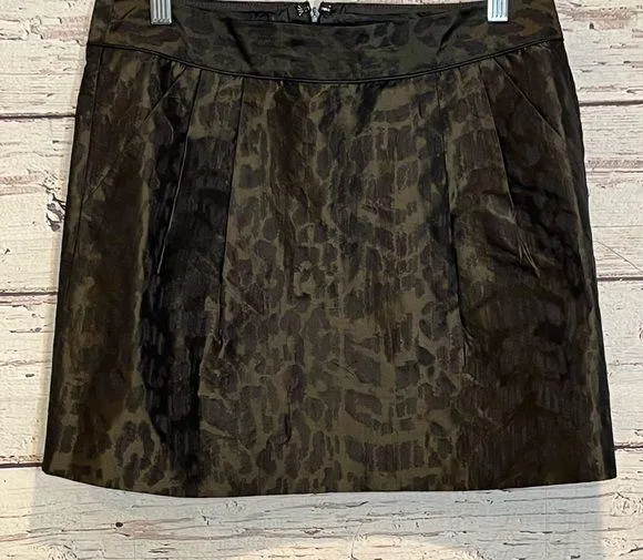 EUC Gorgeous brocade mini skirt in an olive and black leopard print. Fully lined, two side pockets,... Show more