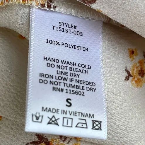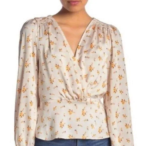 LUSH Floral Surplice Peplum Long Sleeve Blouse (Cream) - Small Semi-satin crepe fabric Gathered at... Show more