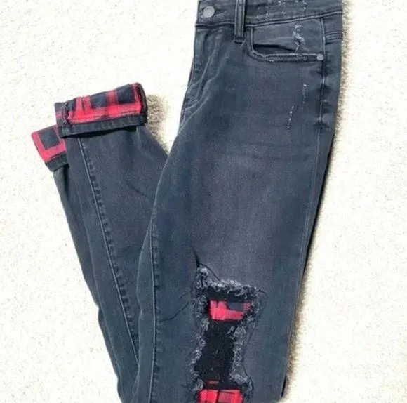 Judy Blue Plaid Patch Distressed Skinny Jeans Black Wash 7 28 - $44 (31% Off Retail) - From Ava