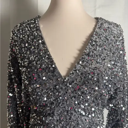 Shimmering silver mini dress. Long sleeves. V-neckline. Perfect for parties. AE2
