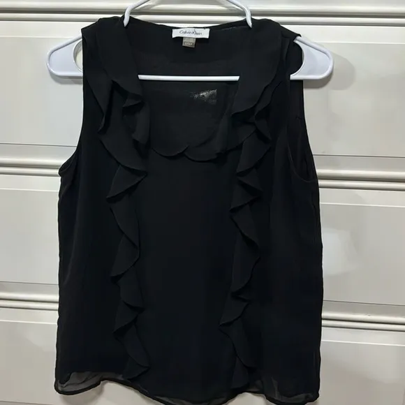 Calvin Klein Ruffle Blouse Black - $13 - From Gkarelly