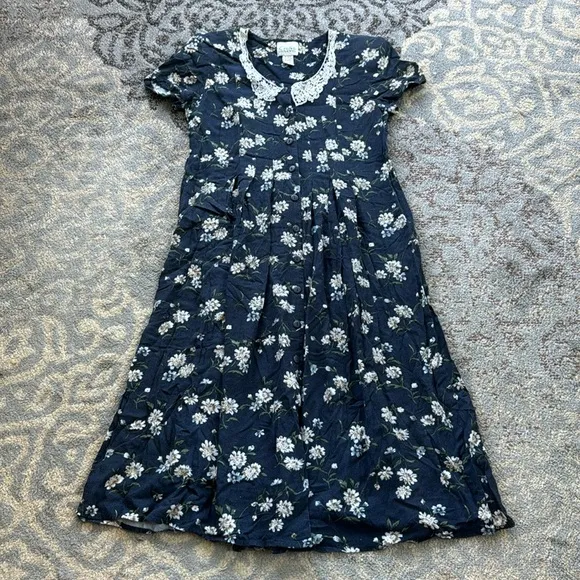 Vintage Cristin Stevens Floral Button Down Dress Navy Medium Blue - $50 - From Samantha