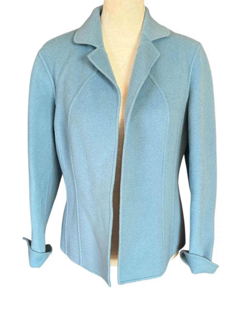 Women's Talbots Petites light blue collared long sleeve open cardigan sweater jacket, size P4. This... Show more