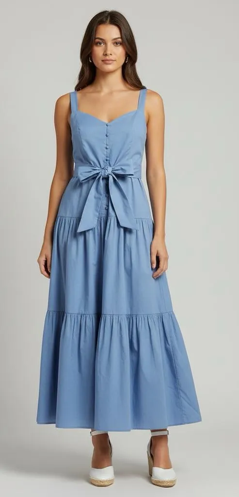 Ralph Lauren Tiered Maxi Dress in Pale Azure Blue Cottage core Boho - Size 12 Beautiful cotton-blen... Show more
