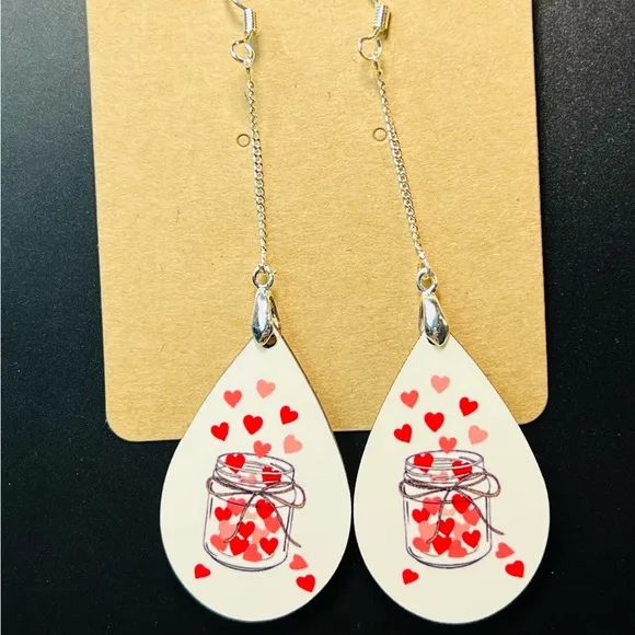 Hearts Jar Teardrop Dangle Earrings New - $9 New With Tags - From Shari